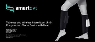 The FDA approved Smart-DVT tubeless and wireless portable compression device stimulates blood flow in the extremities by inflating compression bladders in sequence or at the same time (2 treatment modes) every ten-seconds, then deflates the bladders for ten-seconds; before repeating the compression sequence. Optional “heat mode” provides warming of the compression wraps during treatment.